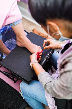 soft file • paint • scented lotion • foot soak • pineapple/coconut foot scrub • leg and arm massage • hot towel • heated neck pillow • finger ring • toe ring • 2 nail arts